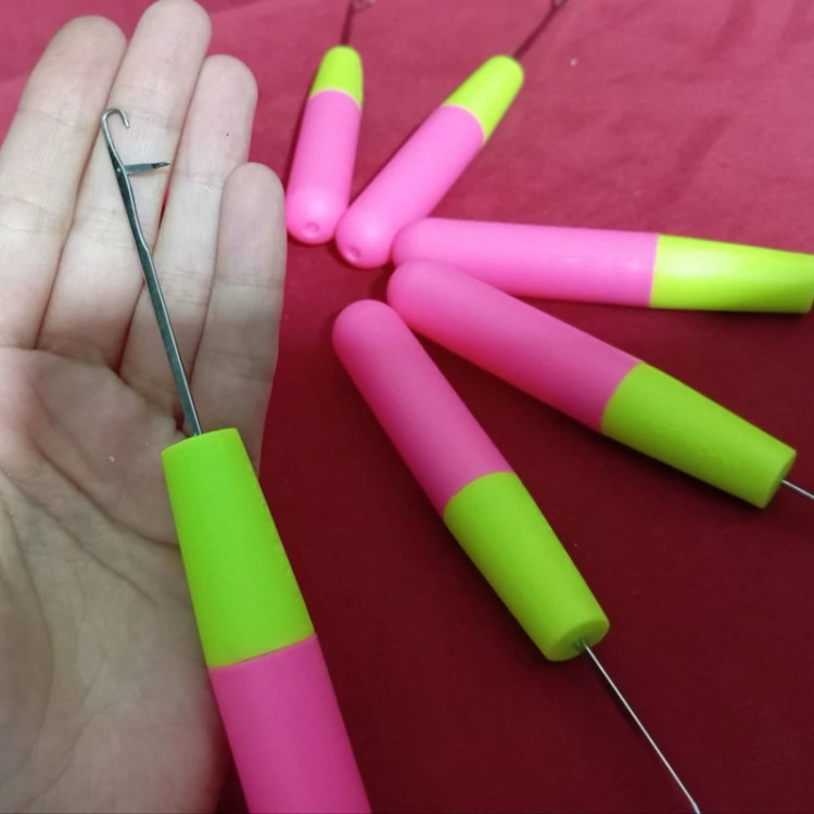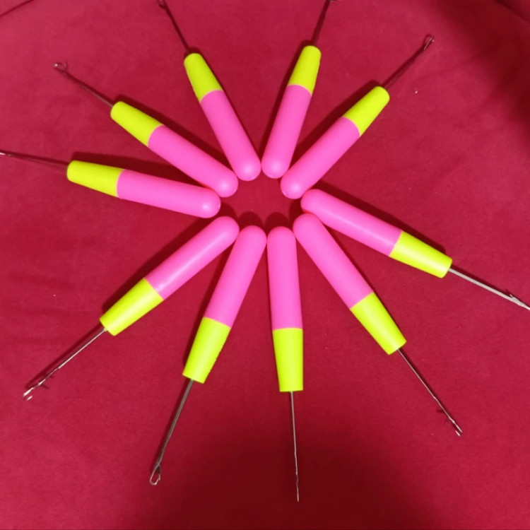 با این قلاب ب راحتی بافت بزن و نخ و موهای رنگی رو بعد از بافت از تو موهات رد کن چون سر قلاب اهرم داره که بازو بسته میشه